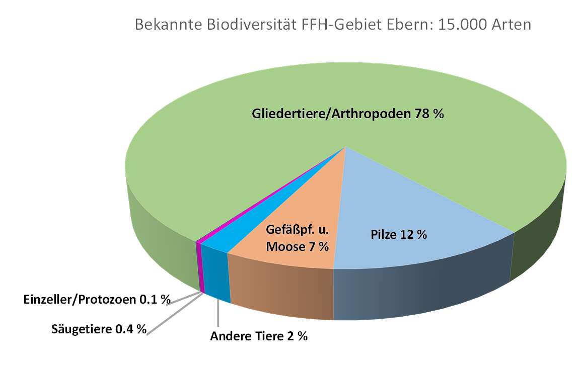 Die geologische Vielgestaltigkeit, der Strukturreichtum und der Verzicht auf Dünger und Spritzmittel sind verantwortlich für eine besonders hohe Artenvielfalt auf dem ehemaligen Übungsplatz. Deshalb wurde 2006 von Dr. Klaus Mandery das Institut für Biodiversitätsinformation e.V. (IfBI) in Ebern gegründet. Im Mittelpunkt der Arbeit steht, der im Herzen des Naturparks Hassberge gelegene ehemalige Standortübungsplatz Ebern und dessen Bewohner. Die Biologische Vielfalt auf dem Sektor der Insekten auf dem ehemaligen Standortübungsplatz lässt sich am besten durch Artenzahlen ausdrücken: … Libellen (32), Heuschrecken (39), Zikaden (189), Wanzen (373), Käfer (1.578), Hautflügler (1.759), Köcherfliegen (77), Schmetterlinge (1.476), Zweiflügler (2.362). Außerdem weist der StOÜbPl eine unglaubliche Artenvielfalt an Pilzen auf, wobei 1.885 Pilzarten auf dem Gelände nachgewiesen wurden.